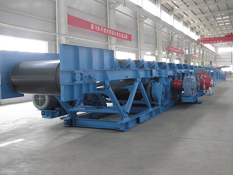 皮带机,又称带式输送机,是一种常见的连续输送设备,通过电动机驱动滚筒带动输送带运转,从而实现物料的连续输送。皮带机主要由输送带、驱动装置、滚筒、托辊、拉紧装置、清扫装置和机架等组成。其结构简单、传输效率高、适应性强,能够输送各种散状物料和成件物品,广泛应用于矿山、冶金、建材、化工等行业的物料输送系统中。